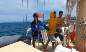 The days went by, and after learning our responsibilities we were now starting to work more. We began classes, did our cleanup jobs, sailed to our first island, and started night watches. A ship is required to always have someone on watch, which means sleep quickly became very precious. Some days I had the 1:00 to 2:00 watch, others 4:00 to 5:00, and others 23:00 to 00:00. However, my favorite one was the 5:00 to 6:00. Because after being exhausted and alone for a long time, I was rewarded with the sunrise. However, even when I didn’t have that watch, I always really enjoyed just looking at the stars at any of the other shifts. The boat tends to be loud for most of the time, so night watch is a good opportunity to be on your own for a while and reflect. Still, even though it was peaceful, it took a lot of energy out of me, which on top of sailing, cleaning, and classes made me tired. This made me become more disorganized, to the point where I had so many things on my bed that I had to sleep curled up like a ball to fit in. My clothes started to run out, and some of them smelled a little bit. After the first few weeks, I was beyond exhausted.